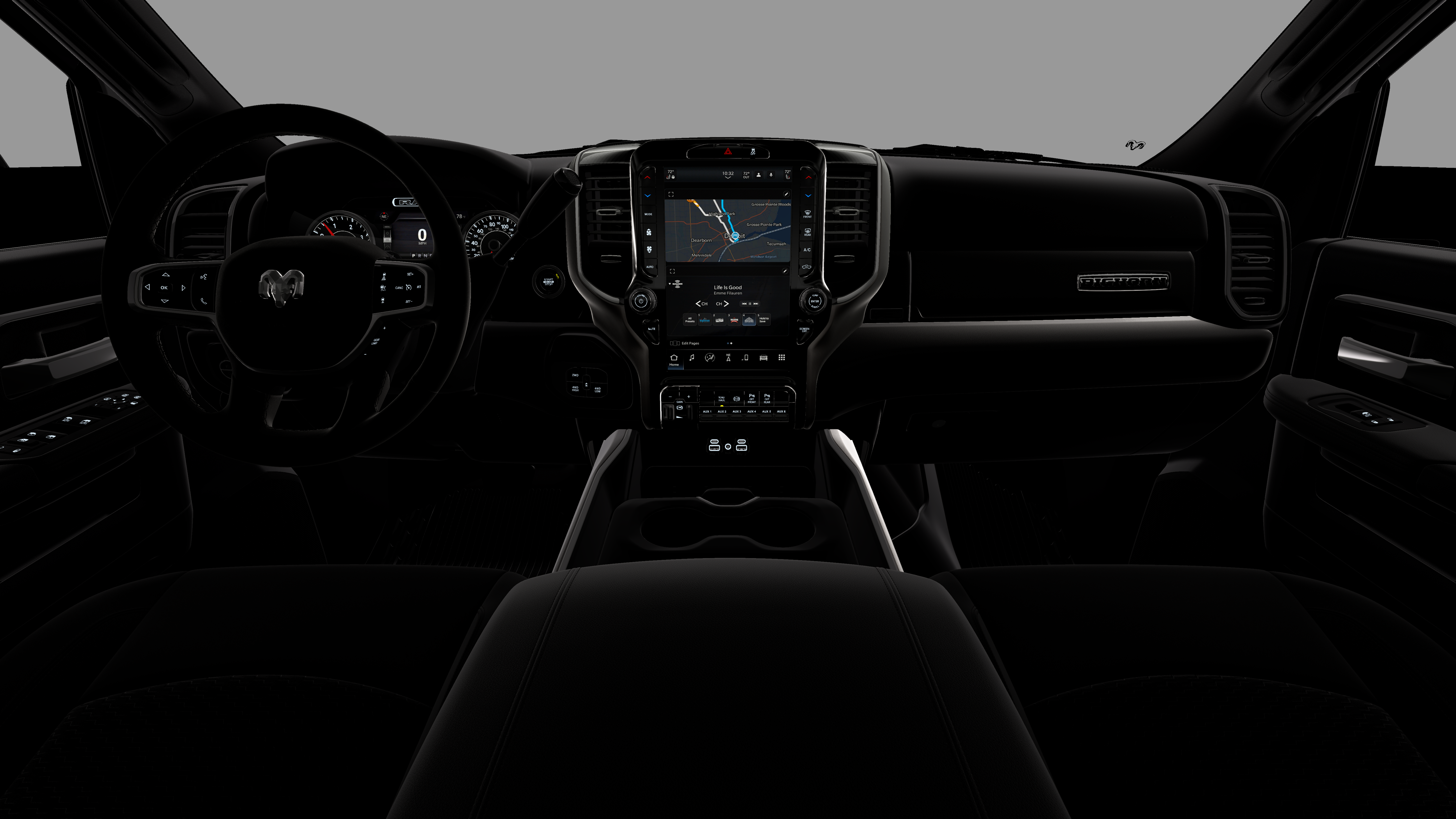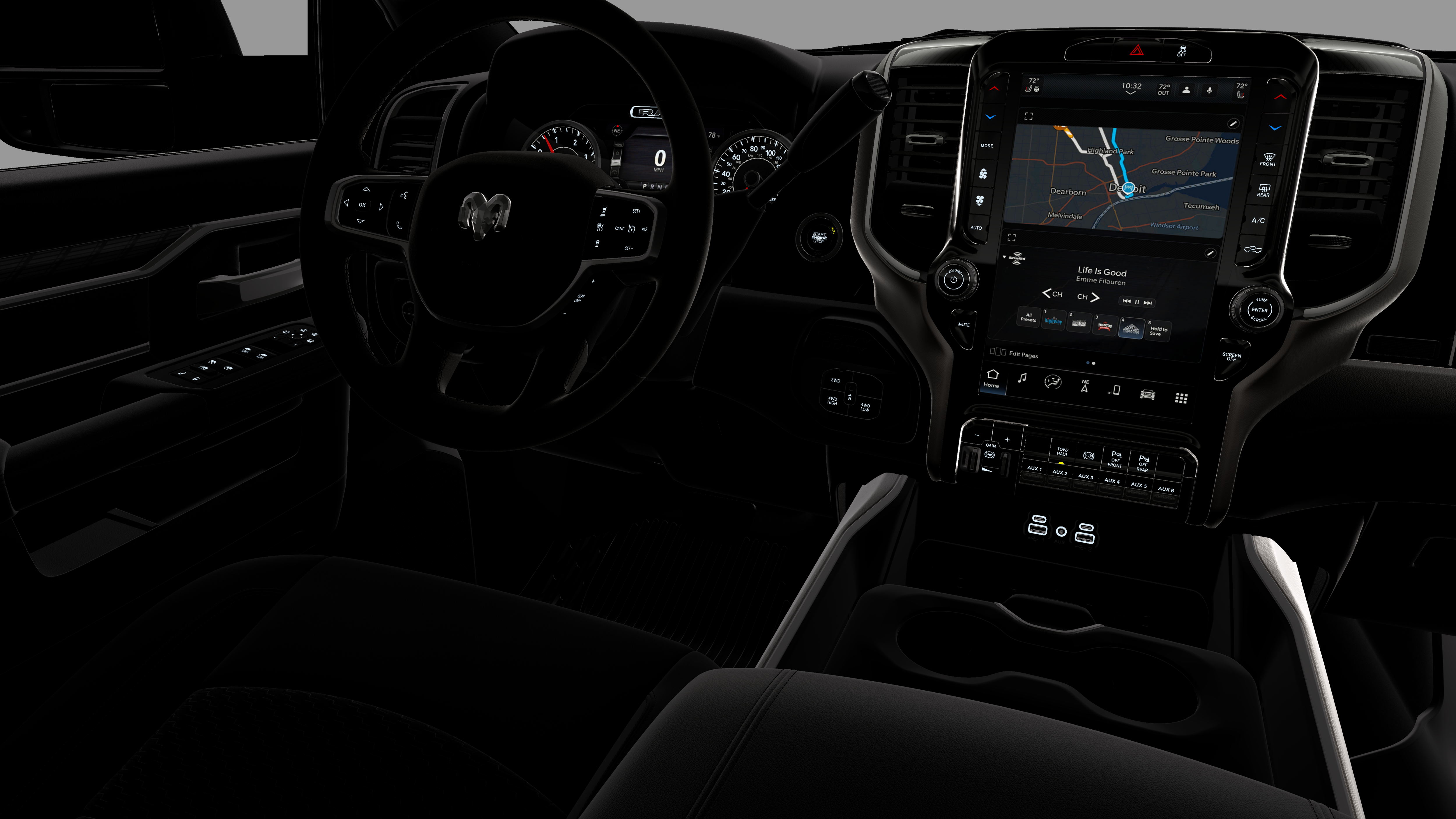 - Radio w/Seek-Scan, Clock, Speed Compensated Volume Control, Aux Audio Input Jack, Voice Activation, Radio Data System and Uconnect External Memory Control